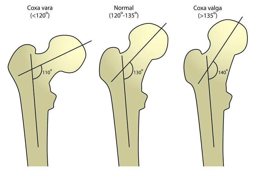 Medicīniskie pētnieki ir iedalījuši sekojoši, visus tos, kuru augšstilba kakliņa leņķis ir 120°un mazāk dēvē par coxa vara, un tos, kuriem leņķis pārsniedz 135° par coxa valga, pa vidu paliek “vidējais normālais”. Cilvēkus ar coxa vara un coxa valga uzskata par deviantiem, tos nepieskaita pie “normāliem”. Taču padziļināti pētījumi par augšstilba kakliņa leņķiem parāda, ka daudzi no mums ir ārpus šeit minētajām “normām”; patiesībā “normāli” indivīdi ar sastopami arī ar 110°līdz gandrīz 150 °leņķiem.